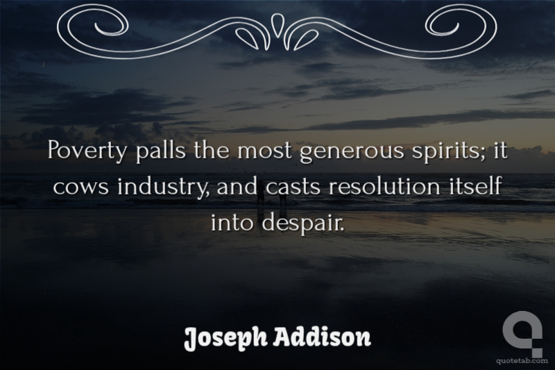 Poverty palls the most generous spirits; it cows industry, and casts resolution itself into despair. Joseph Addison