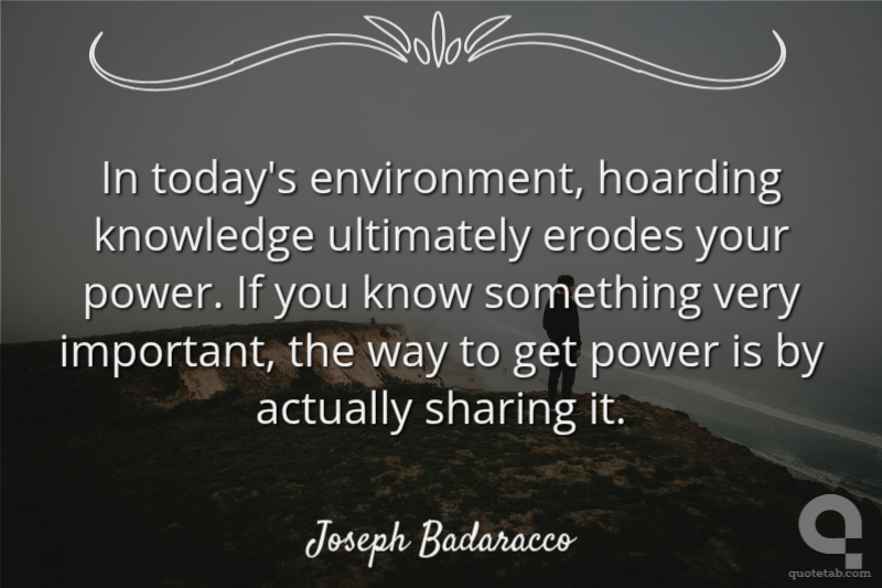 In today's environment, hoarding knowledge ultimately erodes your power. If you know something very important, the way to get power is by actually sharing it. Joseph Badaracco