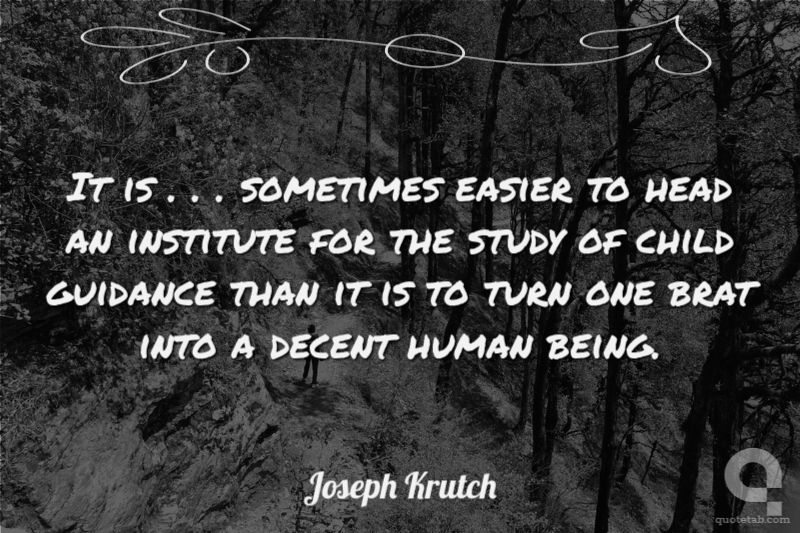 It is . . . sometimes easier to head an institute for the study of child guidance than it is to turn one brat into a decent human being. Joseph Krutch
