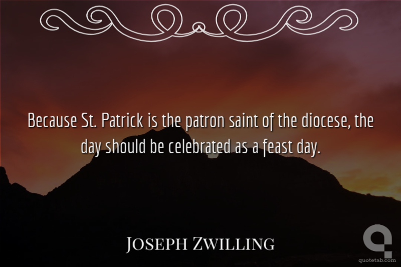 Because St. Patrick is the patron saint of the diocese, the day should be celebrated as a feast day. Joseph Zwilling