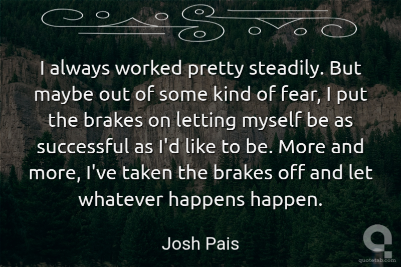 I always worked pretty steadily. But maybe out of some kind of fear, I put the brakes on letting myself be as successful as I'd like to be. More and more, I've taken the brakes off and let whatever happens happen. Josh Pais