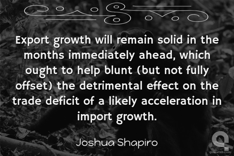 Export growth will remain solid in the months immediately ahead, which ought to help blunt (but not fully offset) the detrimental effect on the trade deficit of a likely acceleration in import growth. Joshua Shapiro