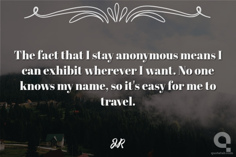 The fact that I stay anonymous means I can exhibit wherever I want. No one knows my name, so it's easy for me to travel. JR