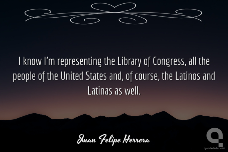 I know I'm representing the Library of Congress, all the people of the United States and, of course, the Latinos and Latinas as well. Juan Felipe Herrera