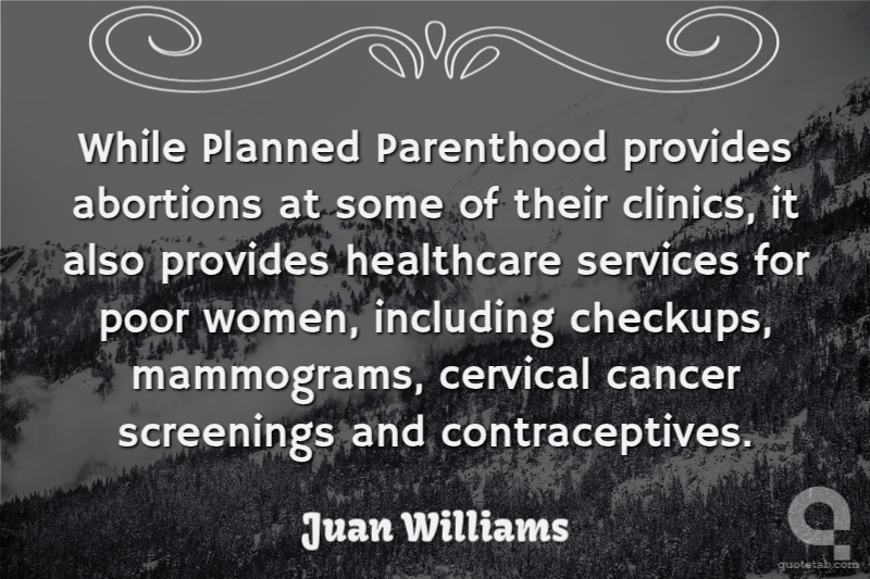 While Planned Parenthood provides abortions at some of their clinics, it also provides healthcare services for poor women, including checkups, mammograms, cervical cancer screenings and contraceptives. Juan Williams