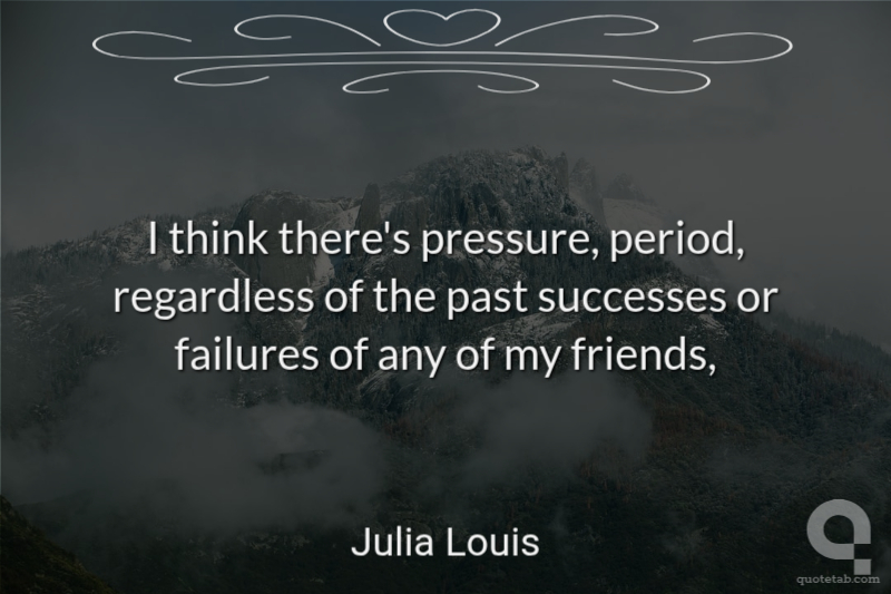 I think there's pressure, period, regardless of the past successes or failures of any of my friends, Julia Louis