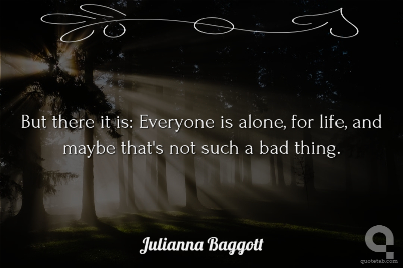 But there it is: Everyone is alone, for life, and maybe that's not such a bad thing. Julianna Baggott