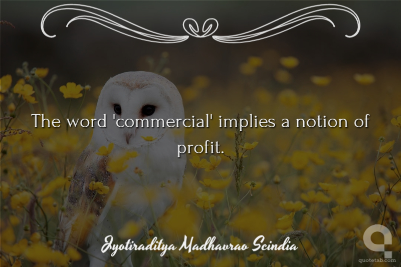 The word 'commercial' implies a notion of profit. Jyotiraditya Madhavrao Scindia