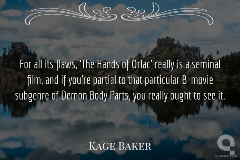 For all its flaws, 'The Hands of Orlac' really is a seminal film, and if you're partial to that particular B-movie subgenre of Demon Body Parts, you really ought to see it. Kage Baker