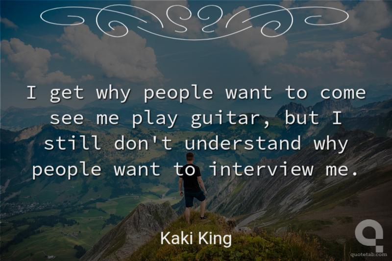 I get why people want to come see me play guitar, but I still don't understand why people want to interview me. Kaki King