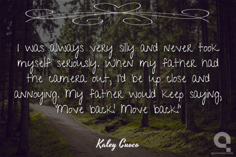 I was always very silly and never took myself seriously. When my father had the camera out, I'd be up close and annoying. My father would keep saying, 'Move back! Move back!' Kaley Cuoco