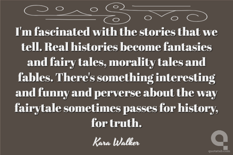 I'm fascinated with the stories that we tell. Real histories become fantasies and fairy tales, morality tales and fables. There's something interesting and funny and perverse about the way fairytale sometimes passes for history, for truth. Kara Walker