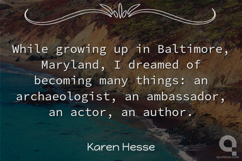 While growing up in Baltimore, Maryland, I dreamed of becoming many things: an archaeologist, an ambassador, an actor, an author. Karen Hesse