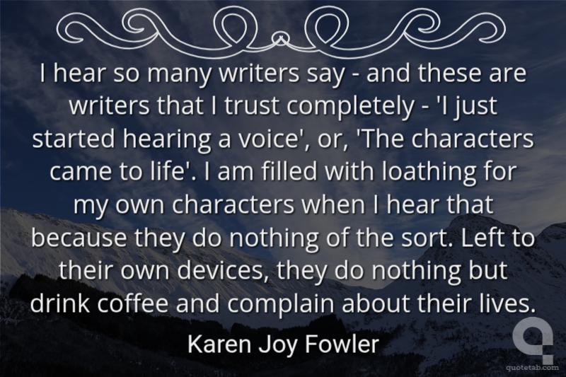 I always say I write my own novels and the characters don't take control of me, but in fact, I look at the characters in the early stages and I think, 'What is he or she like,' and they slowly come together and they become the person they are. A. S. Byatt