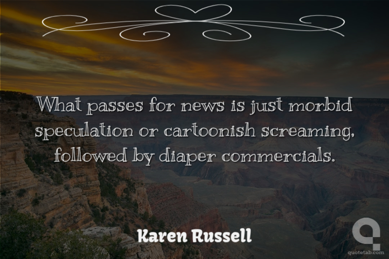 What passes for news is just morbid speculation or cartoonish screaming, followed by diaper commercials. Karen Russell
