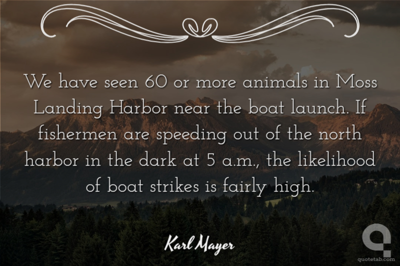 We have seen 60 or more animals in Moss Landing Harbor near the boat launch. If fishermen are speeding out of the north harbor in the dark at 5 a.m., the likelihood of boat strikes is fairly high. Karl Mayer