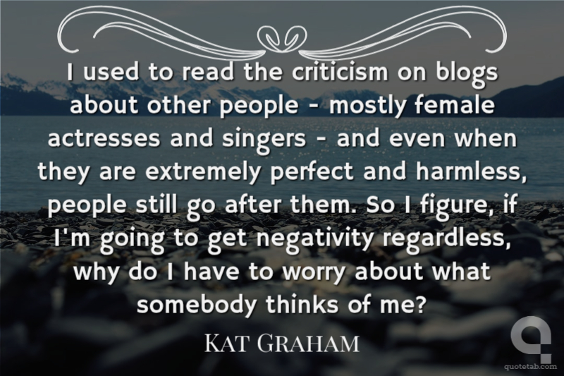 I used to read the criticism on blogs about other people - mostly female actresses and singers - and even when they are extremely perfect and harmless, people still go after them. So I figure, if I'm going to get negativity regardless, why do I have to worry about what somebody thinks of me? Kat Graham