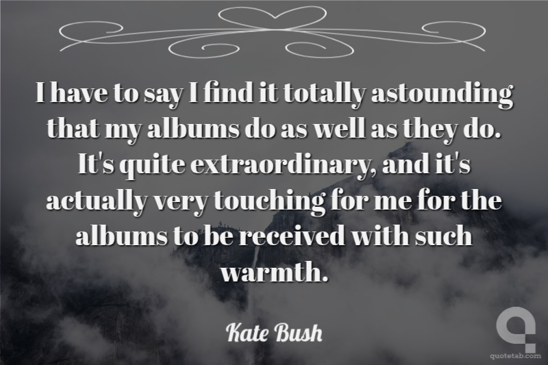 I have to say I find it totally astounding that my albums do as well as they do. It's quite extraordinary, and it's actually very touching for me for the albums to be received with such warmth. Kate Bush