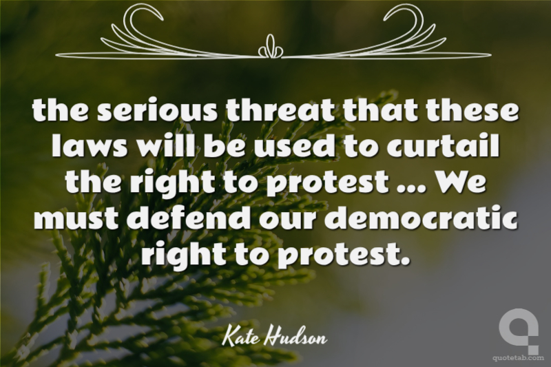 the serious threat that these laws will be used to curtail the right to protest ... We must defend our democratic right to protest. Kate Hudson