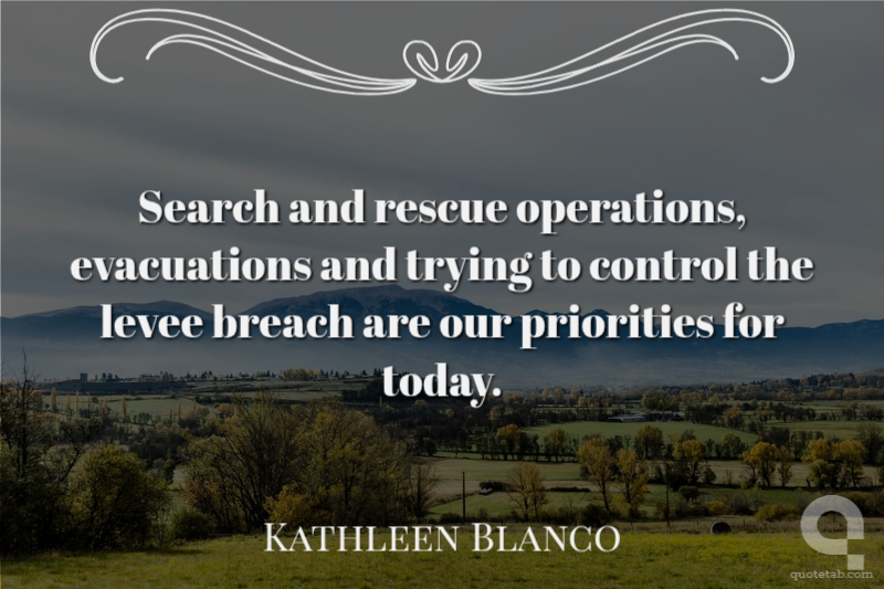 Search and rescue operations, evacuations and trying to control the levee breach are our priorities for today. Kathleen Blanco