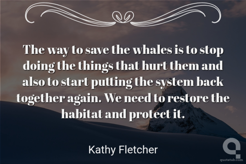 The way to save the whales is to stop doing the things that hurt them and also to start putting the system back together again. We need to restore the habitat and protect it. Kathy Fletcher
