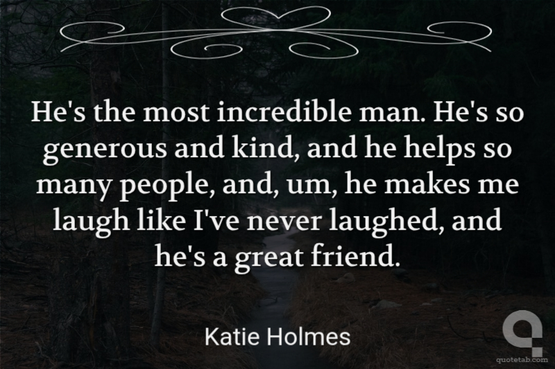 He's the most incredible man. He's so generous and kind, and he helps so many people, and, um, he makes me laugh like I've never laughed, and he's a great friend. Katie Holmes