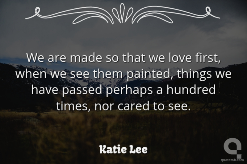 We are made so that we love first, when we see them painted, things we have passed perhaps a hundred times, nor cared to see. Katie Lee