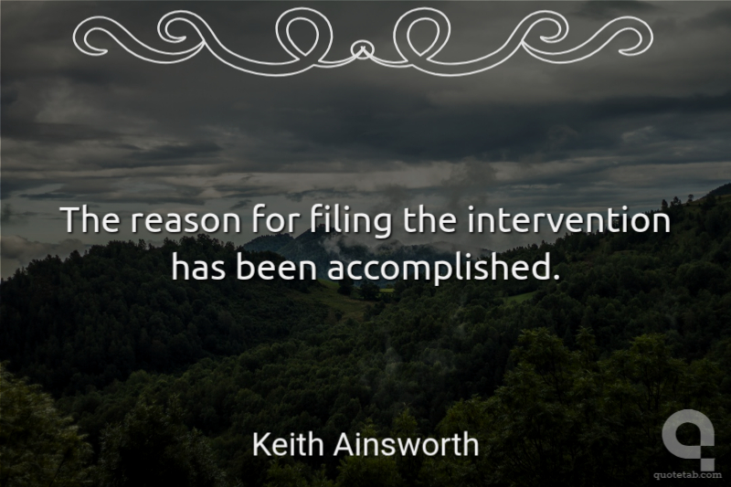 The reason for filing the intervention has been accomplished. Keith Ainsworth