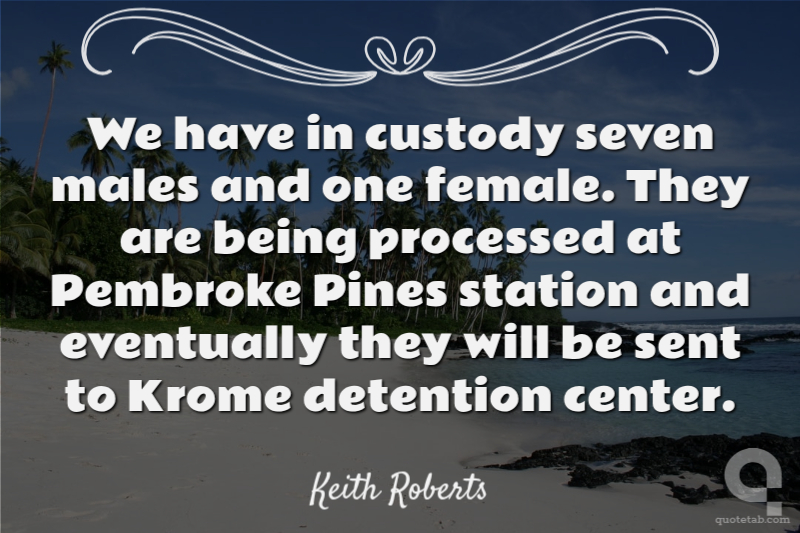We have in custody seven males and one female. They are being processed at Pembroke Pines station and eventually they will be sent to Krome detention center. Keith Roberts