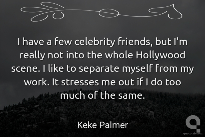I have a few celebrity friends, but I'm really not into the whole Hollywood scene. I like to separate myself from my work. It stresses me out if I do too much of the same. Keke Palmer