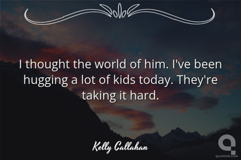 I thought the world of him. I've been hugging a lot of kids today. They're taking it hard. Kelly Callahan