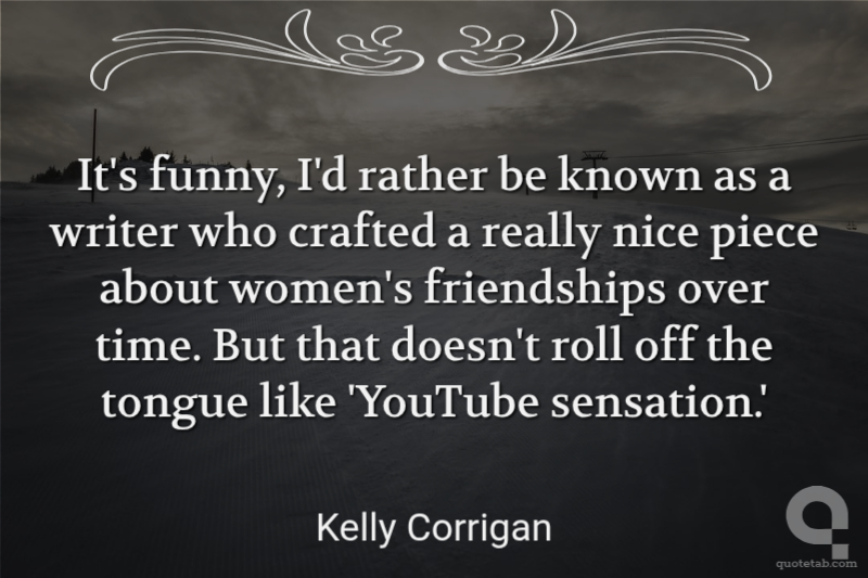 It's funny, I'd rather be known as a writer who crafted a really nice piece about women's friendships over time. But that doesn't roll off the tongue like 'YouTube sensation.' Kelly Corrigan