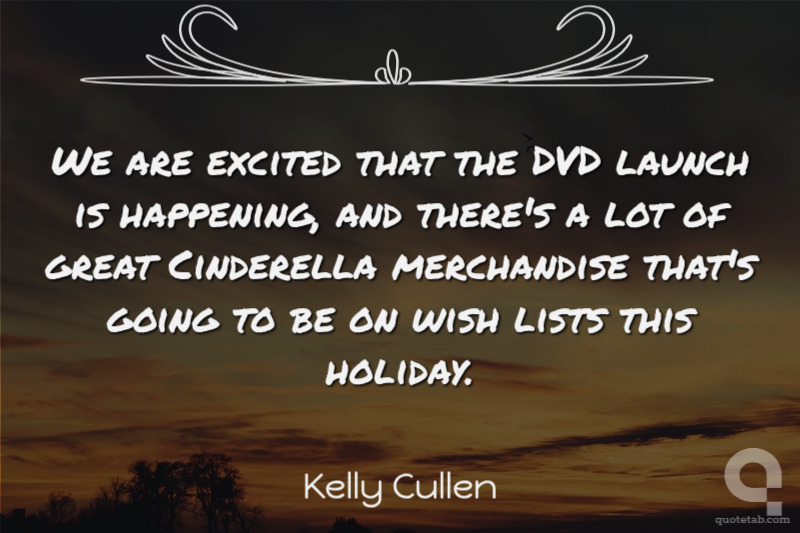 We are excited that the DVD launch is happening, and there's a lot of great Cinderella merchandise that's going to be on wish lists this holiday. Kelly Cullen