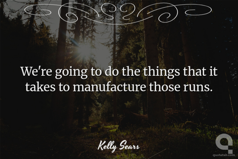 We're going to do the things that it takes to manufacture those runs. Kelly Sears