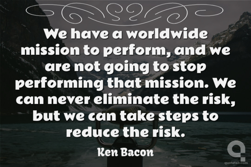 We have a worldwide mission to perform, and we are not going to stop performing that mission. We can never eliminate the risk, but we can take steps to reduce the risk. Ken Bacon