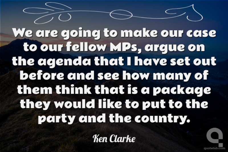 We are going to make our case to our fellow MPs, argue on the agenda that I have set out before and see how many of them think that is a package they would like to put to the party and the country. Ken Clarke