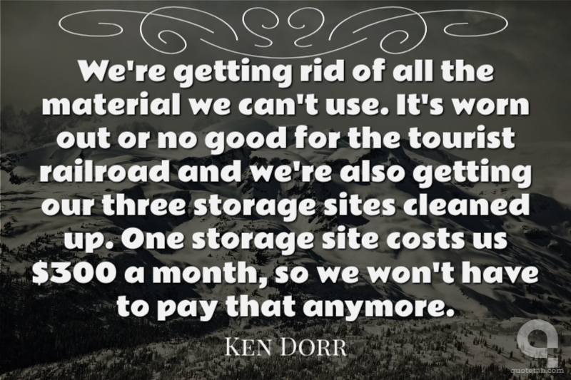 We're getting rid of all the material we can't use. It's worn out or no good for the tourist railroad and we're also getting our three storage sites cleaned up. One storage site costs us $300 a month, so we won't have to pay that anymore. Ken Dorr