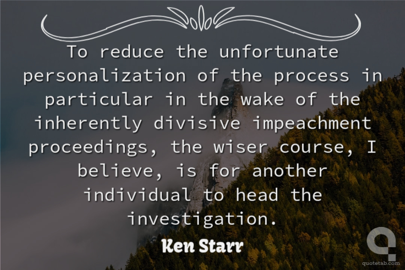 To reduce the unfortunate personalization of the process in particular in the wake of the inherently divisive impeachment proceedings, the wiser course, I believe, is for another individual to head the investigation. Ken Starr