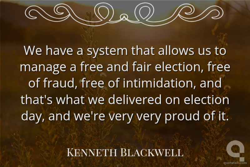 We have a system that allows us to manage a free and fair election, free of fraud, free of intimidation, and that's what we delivered on election day, and we're very very proud of it. Kenneth Blackwell