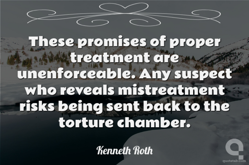 These promises of proper treatment are unenforceable. Any suspect who reveals mistreatment risks being sent back to the torture chamber. Kenneth Roth