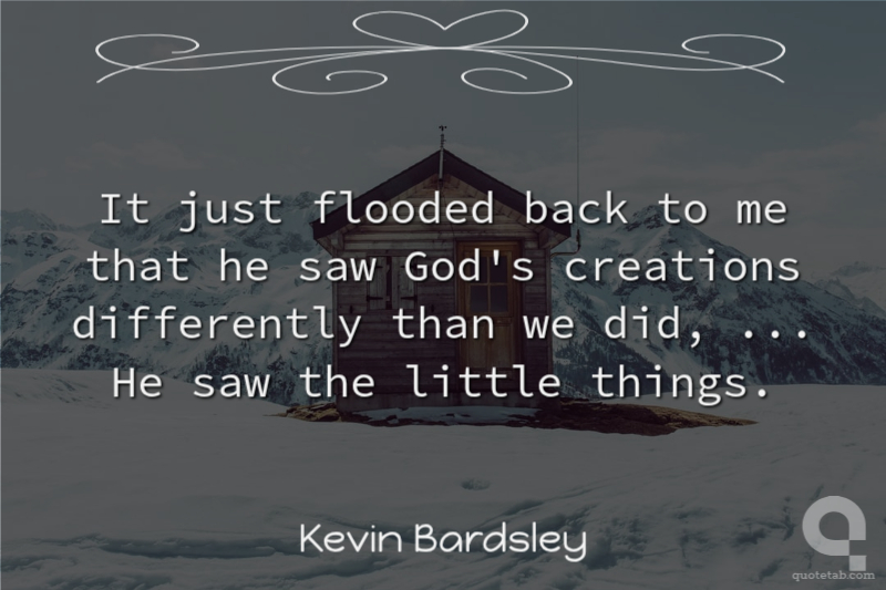 It just flooded back to me that he saw God's creations differently than we did, ... He saw the little things. Kevin Bardsley