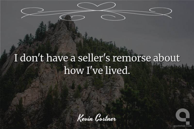 I don't have a seller's remorse about how I've lived. Kevin Costner