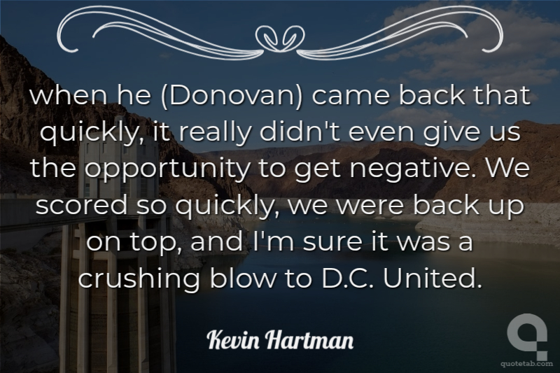 when he (Donovan) came back that quickly, it really didn't even give us the opportunity to get negative. We scored so quickly, we were back up on top, and I'm sure it was a crushing blow to D.C. United. Kevin Hartman