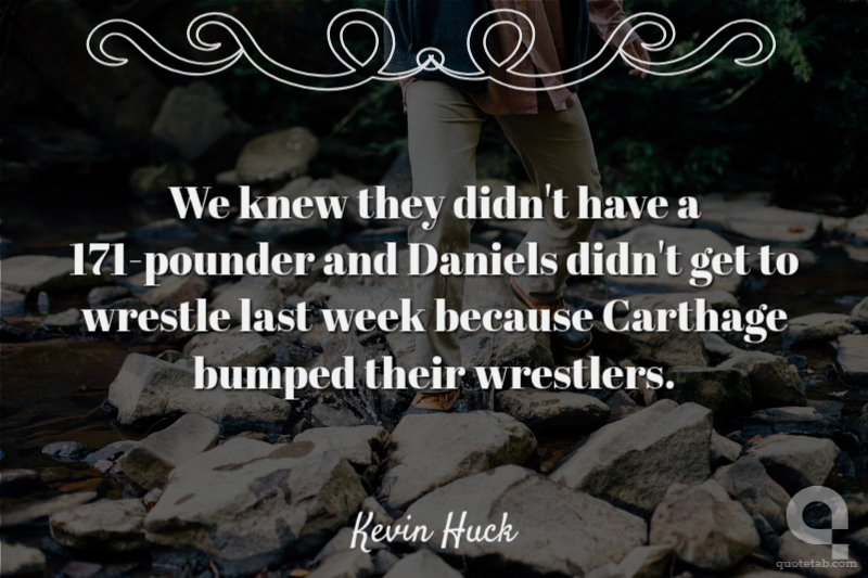 We knew they didn't have a 171-pounder and Daniels didn't get to wrestle last week because Carthage bumped their wrestlers. Kevin Huck