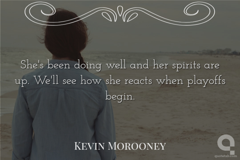 She's been doing well and her spirits are up. We'll see how she reacts when playoffs begin. Kevin Morooney