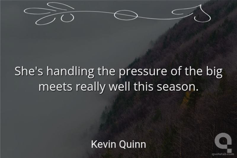 She's handling the pressure of the big meets really well this season. Kevin Quinn