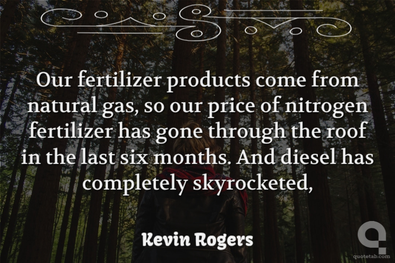 Our fertilizer products come from natural gas, so our price of nitrogen fertilizer has gone through the roof in the last six months. And diesel has completely skyrocketed, Kevin Rogers