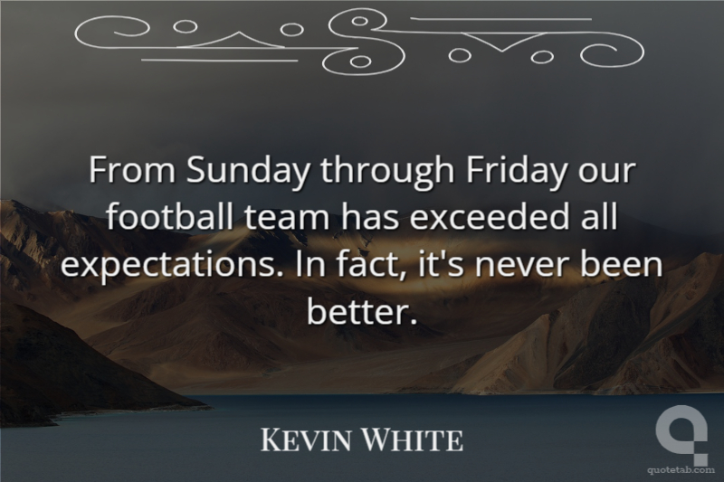 From Sunday through Friday our football team has exceeded all expectations. In fact, it's never been better. Kevin White