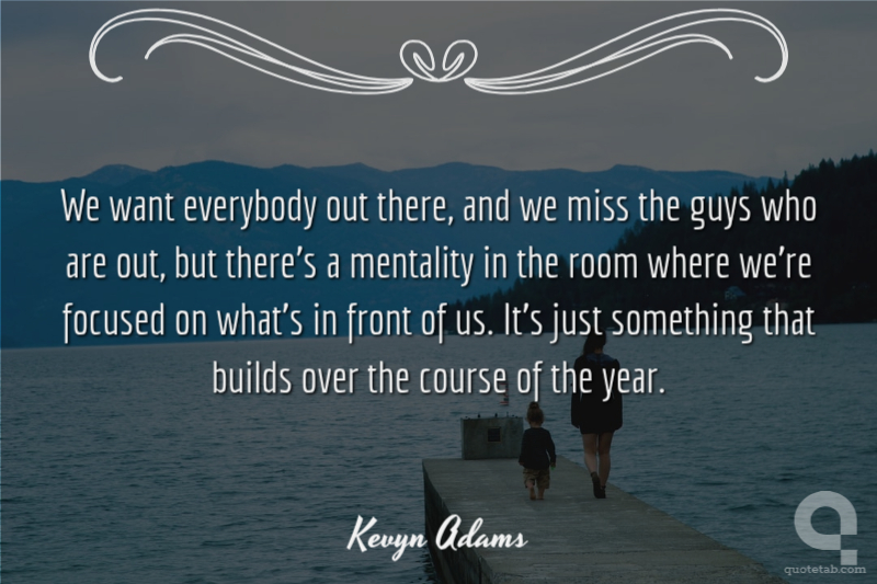 We want everybody out there, and we miss the guys who are out, but there's a mentality in the room where we're focused on what's in front of us. It's just something that builds over the course of the year. Kevyn Adams
