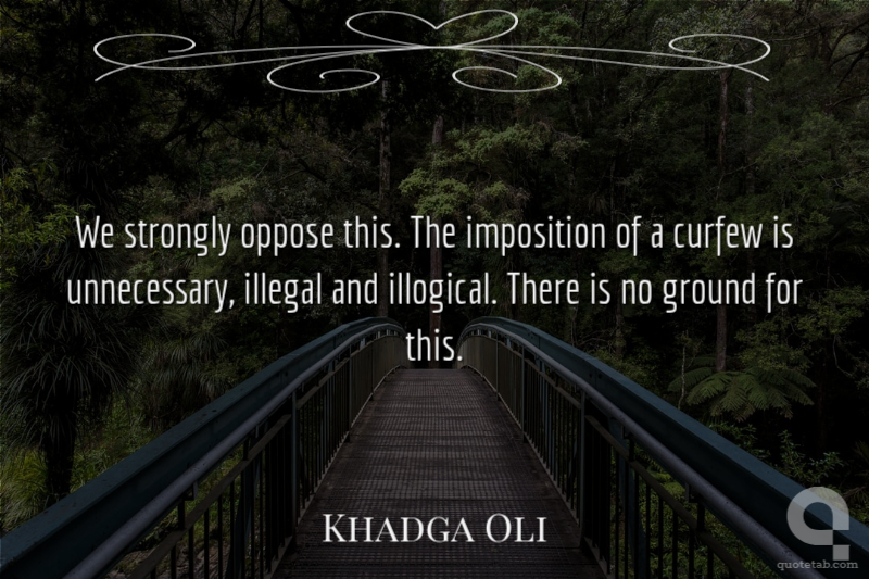 We strongly oppose this. The imposition of a curfew is unnecessary, illegal and illogical. There is no ground for this. Khadga Oli